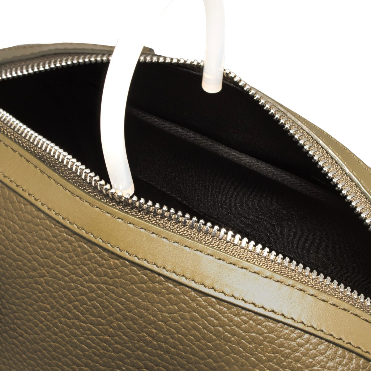 Bauletto da donna 100% vera pelle firmato HARIGIÒ di colore verde militare, la borsa può essere utilizzata sia con tracolla regolabile, che a mano basta togliere la tracollina tramite i 2 moschettoni removibili, cosi da poterla usare in base alle proprie esigenze, occasioni e stile.