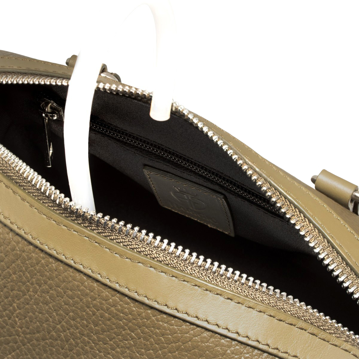 La borsa ha un ampia apertura per facilitarne l'utilizzo, e si chiude con una chiusura lampo a cursore in metallo con pendolino in vera pelle, internamente è foderata con foderame misto cotone di colore nero con 2 tasche di cui una con chiusura lampo e l'altra tasca aperta per un ulteriore scompartimento per telefonino, sigarette, accendino e altro.